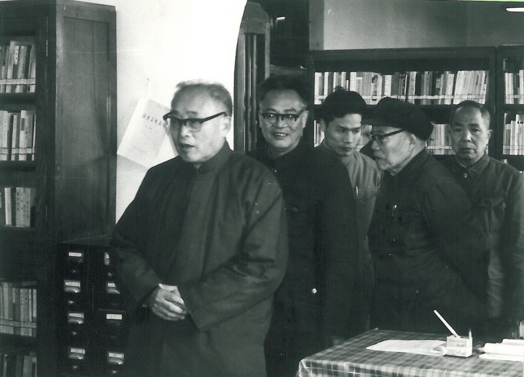 1983年4月,刘佛年带队访问陕西师范大学时参观该校教学设施