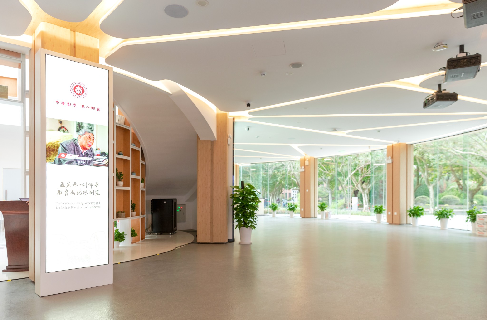 孟宪承·刘佛年教育成就陈列室通过珍贵的文献、实物和400余张图片,创新引入最新数字媒体交互技术和虚拟现实技术,采用传统布展与红外线互动投影、CAVE虚拟现实沉浸式系统、口述历史访谈影像相结合的形式,图文声像并茂地展现两位先生的教育学术研究成果。