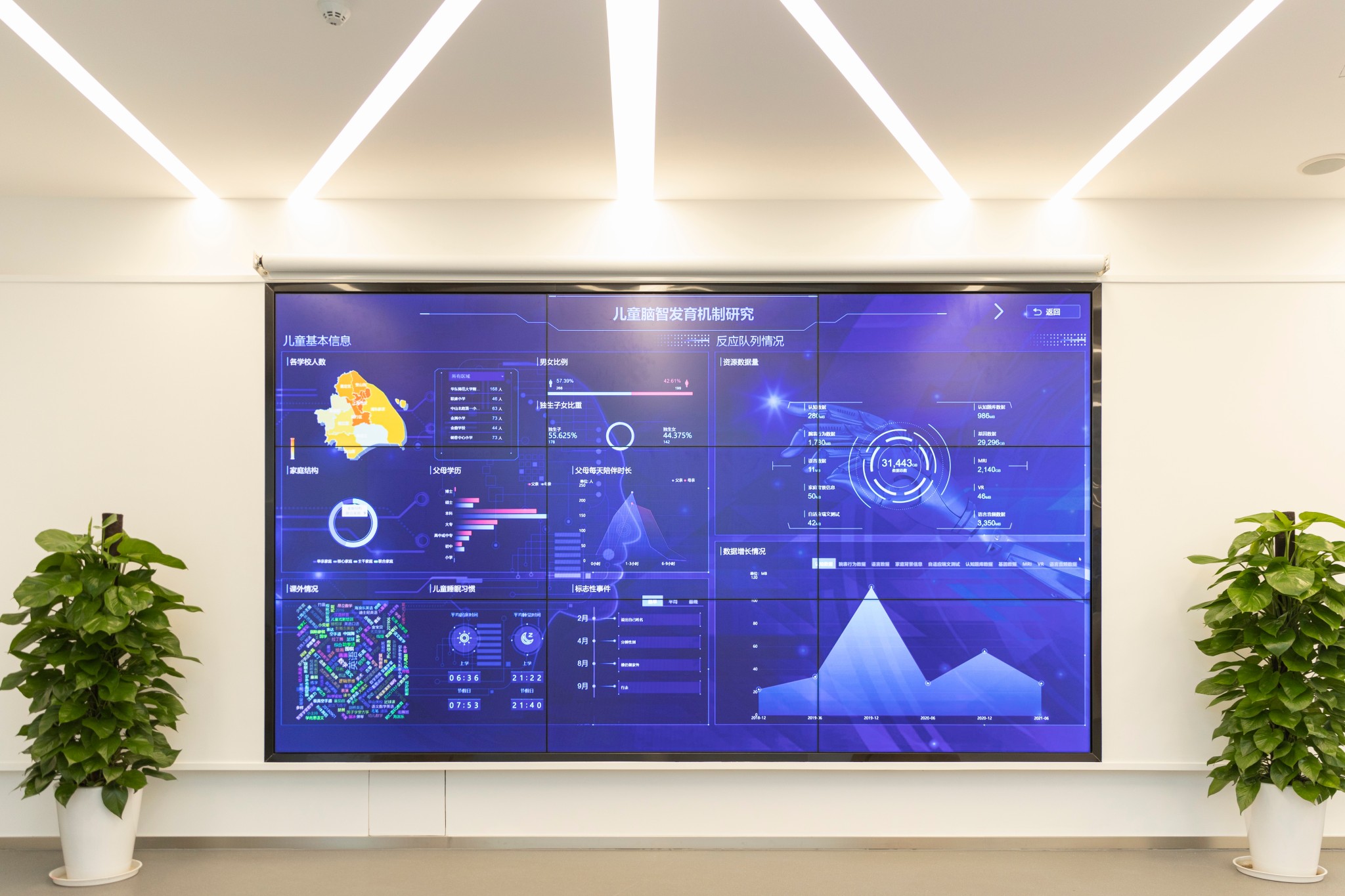 值得一提的是,从陈列室沿旋转楼梯而上,二楼便是卓越学术沙龙,这里汇聚了华东师大最新的人文哲社科研成果。如创新发展展区以大屏展示华东师大智能教育、城市创新、数据科学创新成果,公共服务区为日常学术研究活动提供便利,专业服务区包含数据银行、数据密室等数据存取终端。