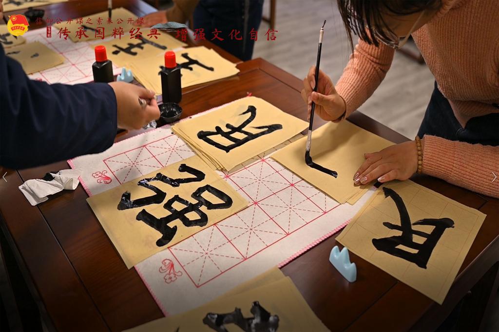 公开课还设置了互动环节,同学们前往文学院书法教室、塔影湖畔等地临摹书法、绘制脸谱,亲身体验各式传统文化,提升了对国粹经典的认同感。