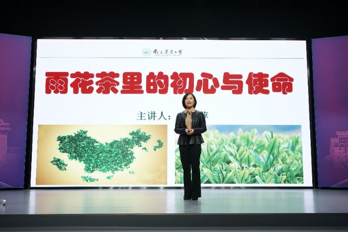 活动的第二场举办了“碧血丹心雨花魂·慕课”进校园暨“牢记雨花英烈初心使命,争做强农兴农时代新人”茶学专业教育示范课活动,让课程不仅成为党史学习教育分享会的延续,更成为推动学院本科生教育与课程思政建设的新举措。邀请茶学学科点点长房婉萍教授担任主讲,为学院新生上了一堂形式独特的“专业+思政教育课”,她在授课中介绍雨花茶的品质特色、品质形成关键、品牌现状、发展前景,并邀请研究生现场展示雨花茶茶叶冲泡流程,详细介绍了审评茶的步骤、细节与重点,引导学生用更加专注、专业的态度,对待学业和事业。