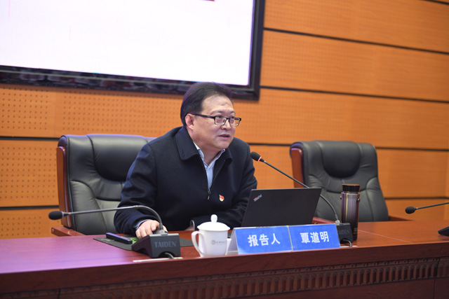 11月30日,中国地质大学(武汉)以线上线下相结合的方式同步举行学习宣传党的十九届六中全会精神专题讲座。覃道明以“以史为鉴 开创未来 以伟大的历史主动精神担当民族复兴使命”为题,从“深刻认识全面总结党的百年奋斗重大成就和历史经验是郑重的历史性、战略性决策”“深刻领会全会精神的核心内涵”和“深刻把握用伟大的历史主动精神映照新赶考路”三个部分,引导大家学习《中共中央关于党的百年奋斗重大成就和历史经验的决议》的主要内容和重要意义。