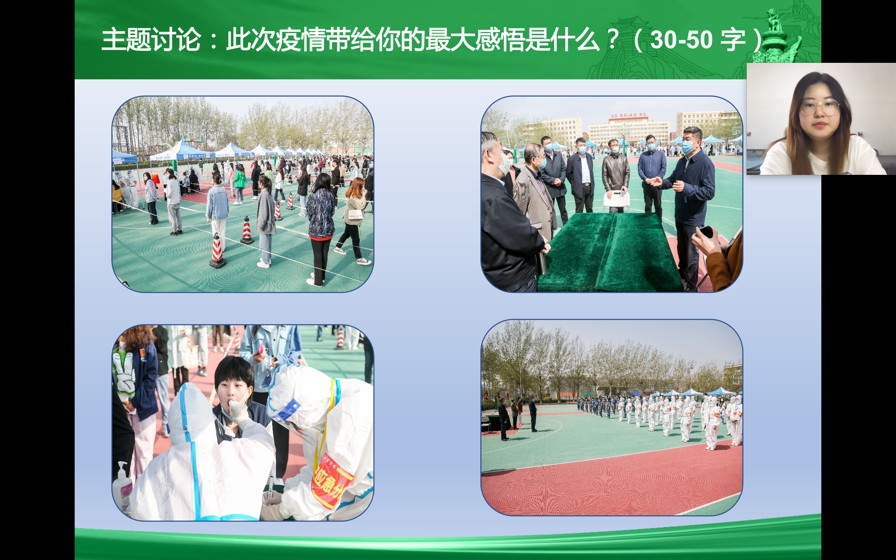 专业课老师们纷纷以抗疫精神作为切入点,融入到教学当中,提高同学们的政治认同度、文化认同度和心理认同度等。