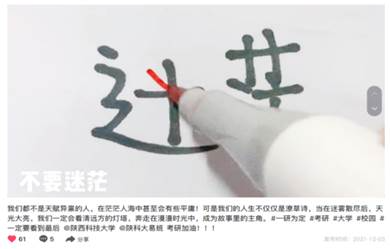 以青年为导向进行网络文化作品创作,新媒体作品的选题完善坚持从青年出发,采用青年喜闻乐见的方式,从青年中来,到青年中去,用青年形象塑造青年榜样,传播时代新思想。同时,以正能量培育和学生思想引领为工作内容,紧抓时政热点,以贴近青年的角度和语言,解读新时代思想,开展理论学习,在潜移默化中进行思想引领,培育青春正能量。