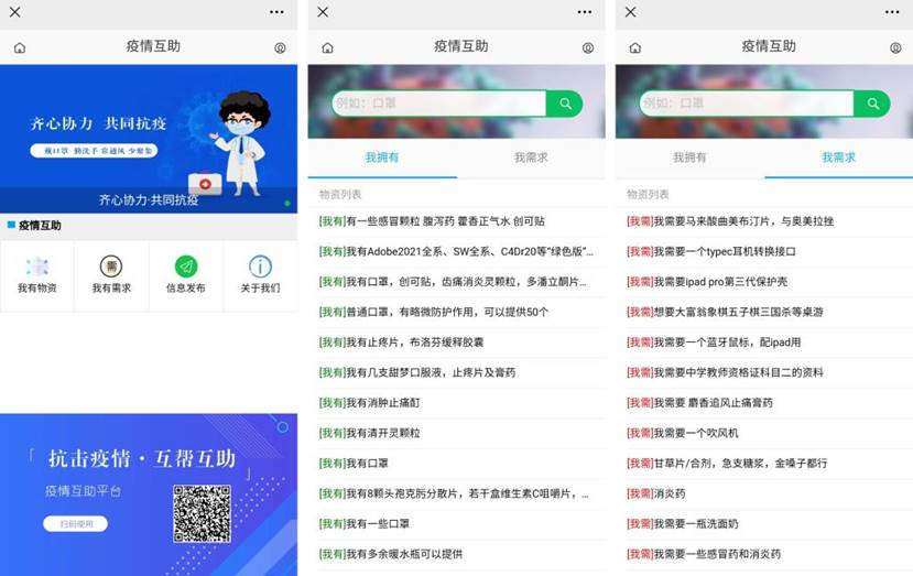 线上搭建“解茫盒”云平台,结合学生群体中“无人不网,无处不网,无时不网”的新形势,充分利用互联网服务功能,线上搭建“解茫盒”云服务平台。该平台设置“茫盒仓库、发起茫盒、我的茫盒、投诉建议”四个模块,“茫盒仓库”即为所有学生的提问与解答数据库,同时具备关键词搜索功能;“发起茫盒”即为学生的提问窗口,学生可在此模块提出自己的疑惑;“我的茫盒”即为学生查看回复的窗口;同时,设计平台二维码张贴于学院341个学生宿舍,方便学生扫码进入云平台,随时提出困惑、表达诉求和征集意见。此外,平台设置“公示”栏,及时发布各项学生工作的通知公示,例如:奖学金申请通知、证书领取通知等。“解茫盒”云平台拉近了学院与学生、教师与学生的距离,为做好思想引领和教育管理提供有效保障。在疫情防控期间,学生面临一系列新的实际问题和困难,例如快递无法及时送达、人员不能随意外出、个人物资储备不够充分等。基于此类问题,“解茫盒”云平台及时拓展系统,开发疫情互助功能,设置“我有物资”“我有需求”“信息发布”等多个模块,在校师生不仅可以发布物资需求寻得帮助,还可以将个人闲置物资信息发布到平台上,在求助者与助人者之间架起一座桥,助力师生守望相助、共克时艰。