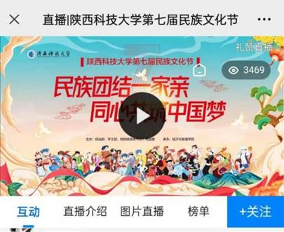 连续举办七届民族文化节系列活动。自2014年起,“SUST石榴云”工作室承办了第一届民族文化节,经过7年奋斗,民族文化节的影响力从小到大,从第一届的“民族活动日”扩展为第七届的“民族活动月”连续性活动,目前已成为陕西科技大学的品牌活动。在“民族文化月”期间,工作室聚焦宣传引领,强化思政教育,线下举办民族团结教育纪实展、民俗风情展和文艺汇演;线上充分发挥新媒体矩阵的宣传作用,工作室采用现场直播的方式,在校网络思政中心“SUST云科大”视频号进行节目直播,在抖音“经管有你”进行各民族展区直播,让更多没有到达现场的师生也感受各民族的文化魅力。直播观看人次共计达50000+。同时,工作室设计出多种网络文创产品,让科大学子拥有专属于民族文化节的回忆录。如以“民族服饰”为主元素的易班熊;以“56”为主元素的口罩;以“民族团结”“民族平等”“民族繁荣”“民族进步”“民族互助”为主元素的激励章;以“民族一家亲”为主元素的折扇、手环、手提袋、明信片、民族贴纸等。线上线下同频共振,共同营造民族团结一家亲,同心共筑中国梦”的和谐氛围,共育民族团结之花,共享繁荣发展之果。