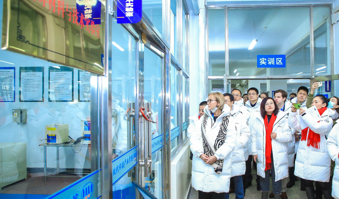 当天下午,德国企业代表一行60余人来到哈尔滨华德学院进行参观。参观过程中,执行校长张智与来访嘉宾进行深入交流,并对学校办学特点特色进行介绍。德国企业代表团一行人先后参观了学校现代焊接产业学院、华德-吉利汽车产业学院。学院老师对学生实训基地功能布局、训练课程以及校企合作情况进行了充分的讲解和汇报。在参观过程中,代表团成员详细了解了华德学院“教赛结合”的育人模式,鼓励支持学生在校期间积极参与到各项专业技能竞赛中,在实践中检验学习成果,以技能竞赛为抓手推进教学高质量发展。德国代表团一行人员对华德学院产教融合、协同育人的探索实践表示赞许。