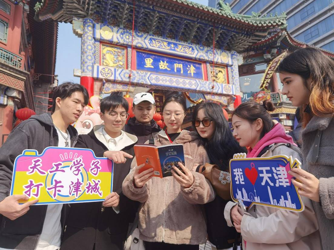 新学期伊始,正值春暖花开,天津工业大学组织开展了“跟着《天津文化地图》‘阅读’我求学的城市”研学活动。为学生赠送《天津文化地图:热爱我求学的城市》书籍,组织集体阅读,实地打卡文化地标,分享心得感悟。通过沉浸式体验、“阅读+实践”的形式,引领和推动校园形成良好读书氛围,引导学生感悟天津文化,感受这座北方大都市的风土人情和历史底蕴,更好爱津留津。