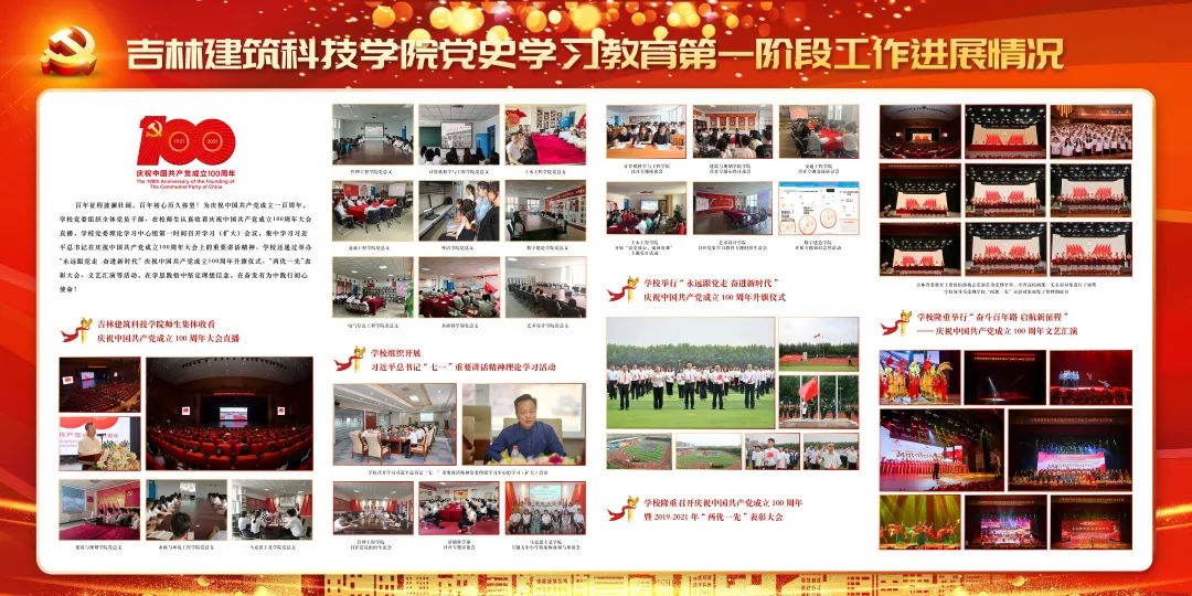 以党史学习教育为牵引,加强国史、党史、改革开放史和社会主义发展史教育,在马克思主义学院建设了学校“四史教育基地”,全方位展示党在各个历史时期的伟大奋斗征程,打造了学校文化育人工作的一个新的阵地和平台。完善建设了13个标准化党团活动室和校园文化长廊,筹备建设了“新时代文明实践站”,积极打造党员教育新课堂。