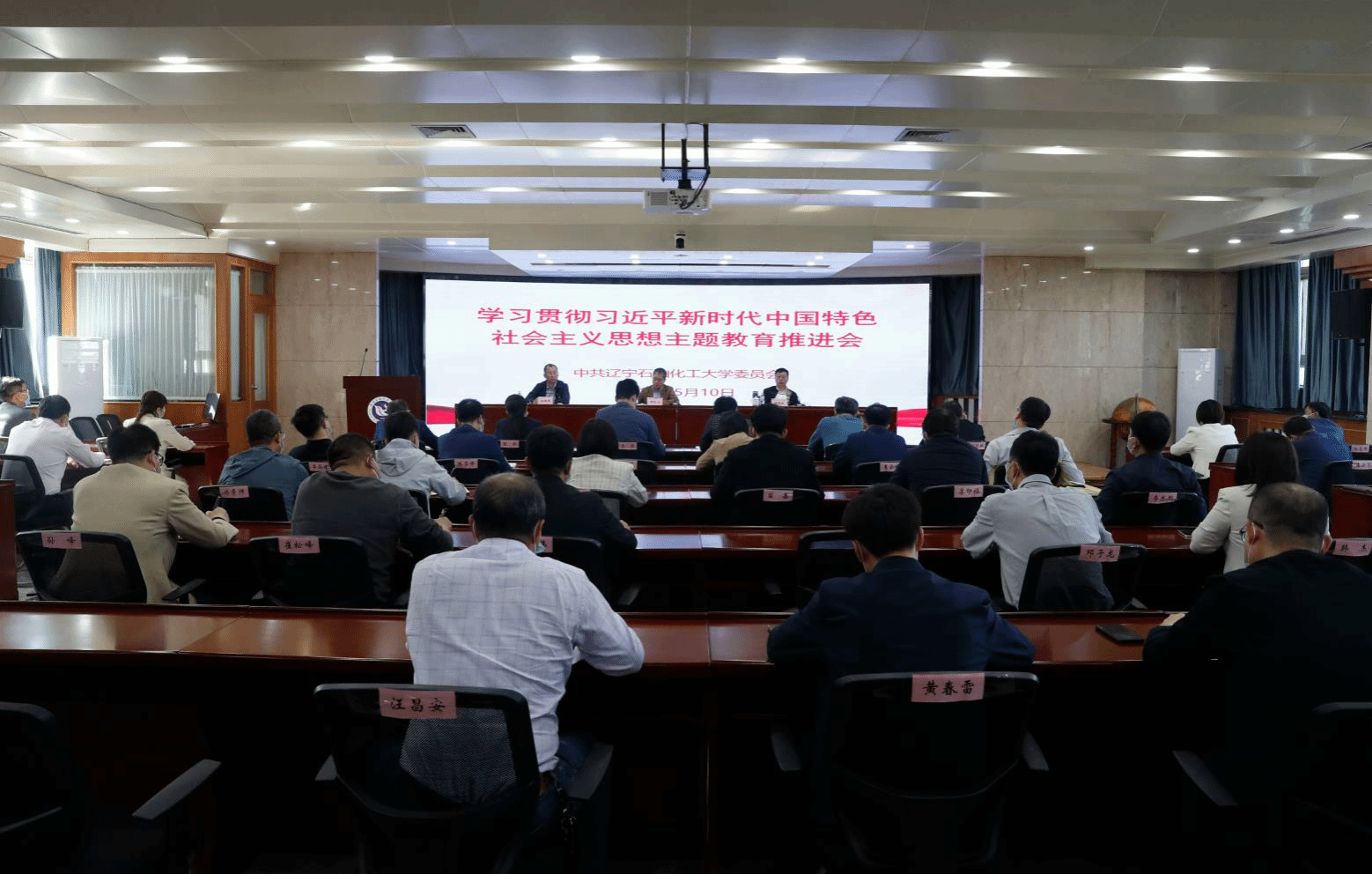 5月10日下午,辽宁石油化工大学在第七会议室召开学习贯彻习近平新时代中国特色社会主义思想主题教育推进会,全面传达落实辽宁省省管高校主题教育座谈会、工作会会议精神,总结学校主题教育的成效、检视存在问题,细化部署下一阶段主题教育工作。校党委书记郭长义出席会议并讲话。会议由校纪委书记孙旭东主持。