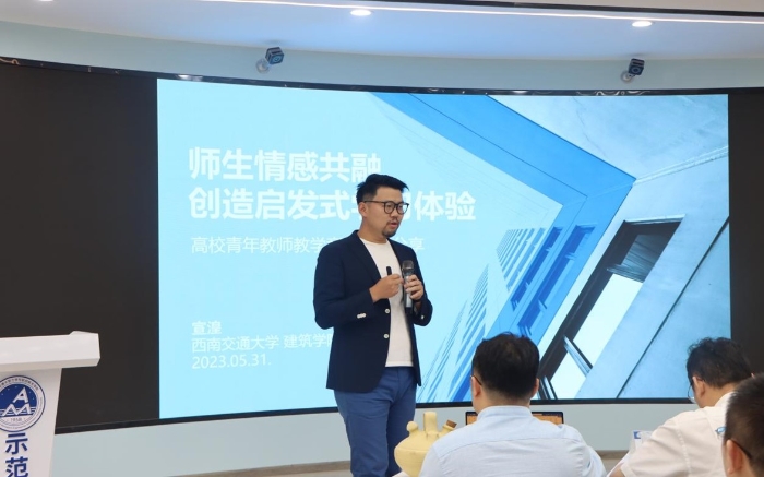 全国高校青年教师教学竞赛工科组一等奖获得者、西南交通大学建筑学院宣湟副教授带来第二场报告,题为“师生情感共融,创造启发式学习体验”。他从“为什么”“是什么”“怎么做”三个方面介绍了自己对青教赛的认识和体会,详细介绍了自己主讲的《绿色建筑学概论》的教学设计和教学开展情况。他认为,教学重在积累,比赛重在参与,只有真正对这个单位、对学生、对教育有责任心的人,才会坚持不懈地投入,每次用心的付出一定会有回报。