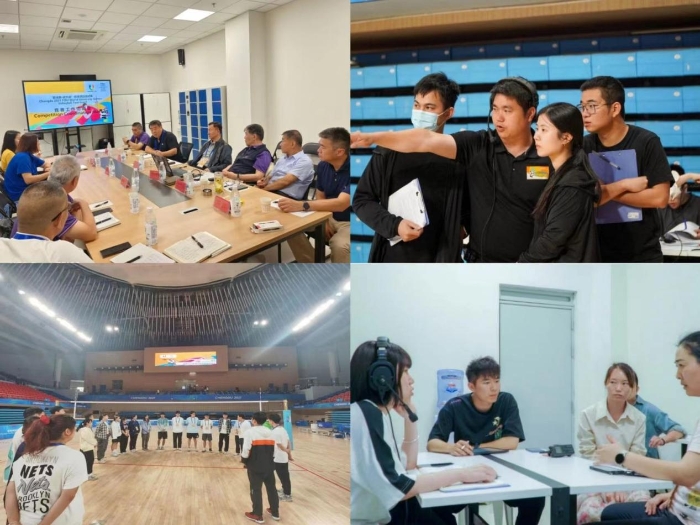 据竞赛工作组牵头部门、体育学院院长刘江教授介绍,自2020年起,学院就抽调了9名工作能力强、经验丰富的教师,专门参与大运会排球项目竞赛筹备工作。他们分别担任场馆中心后勤保障副主任,各竞赛小组(包括竞赛组织、技术官员服务、代表团服务、竞赛技术运行、场地器材、体育展示、反兴奋剂检查等7个工作组)的副经理、主管、专员等岗位,三年来全程参与大运会的各项工作。