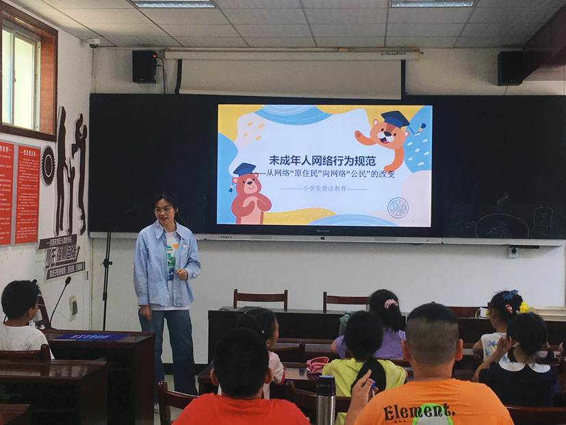 为深入学习贯彻习近平法治思想,让法治精神深入沁润童心,“武大研行”湖北襄阳实践队前往襄阳市希望家园开展“普法宣传进校园”主题教育实践活动。结合儿童成长阶段特点,实践队围绕“未成年人互联网行为规范”“身边的法律科普和不良行为识别”等主题,以小朋友们喜闻乐见的形式开展宣传教育,他们或通过情景问答引入生动案例,或结合《民法典》普及未成年上网的法律知识,现场互动不断、抢答频频,小朋友们乐在其中、学在其中。