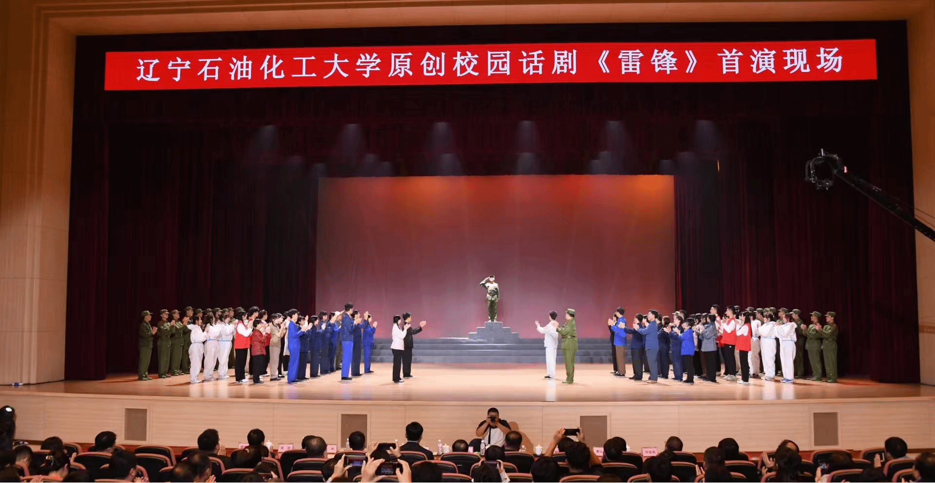 经过三个月的全情投入和紧张排练,凝聚着辽宁石油化工大学师生心血与智慧,饱含着师生对雷锋同志深厚感情的校园原创话剧《雷锋》10月13日在辽宁石油化工大学大学生活动中心礼堂进行首演。来自辽宁省内教育界人士、大中小学校师生代表以及雷锋生前辅导过的学生代表等1000余人现场观剧。
