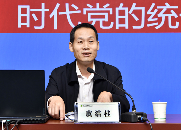 开幕式后,特邀虞浩桂同志作“学习贯彻习近平总书记关于做好新时代党的统一战线工作的重要思想”主旨报告。他结合实际,深入解读了习近平总书记关于做好新时代党的统一战线工作的重要思想中“12个必须”的核心要义,指出了当前统战工作中面临的困难与挑战,并提出了解决思路。论坛还邀请新疆工程学院李玲教授作了题为“铸牢中华民族共同体意识,坚定不移走中国特色解决民族问题的正确道路”的主题报告,他结合新疆工作实际,从铸牢中华民族共同体意识的历史基础、历届中央民族工作会议的历史回顾、新时代党关于加强和改进民族工作的重要思想、推进新时代党的民族工作高质量发展的实践要求等四个方面进行了全面系统的讲解,为高校做好新时代党的民族工作提供了思路和举措。