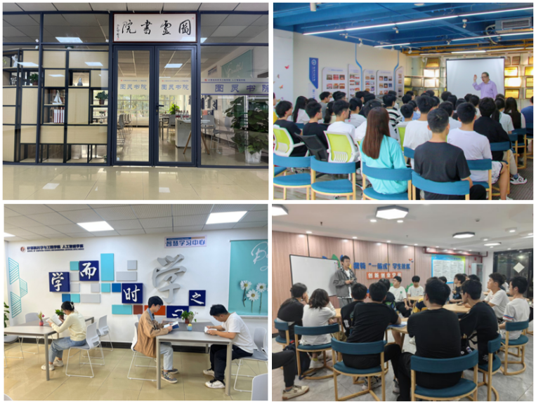 学院积极探索书院制、导师制、学分制“三制”交叉融通的创新育人模式,建立了“图灵书院”,通过打造干净整洁的阅读空间,让学生感知环境之美、书籍之美,为学生搭建思想碰撞的育人平台,将中国传统文化和前沿科技融合,注重学生的价值塑造和人格养成。依托学生一站式服务中心,开设“e路向前”学堂,聘请老师进行专业介绍、课后答疑、学业辅导、创新创业讲座,让学生了解学科之美,专业之美;邀请优秀学生典型分享成功经验,让学生感受榜样之美。不断拓宽专业领域新思路,促进学生更加全面、更加健康的成长,拥有提升自我,幸福未来的能力。