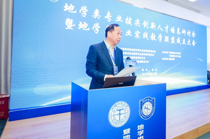 教育部高等学校地质学类专业教学指导委员会主任委员赖旭龙教授宣布地学类专业实践教学联盟正式成立。