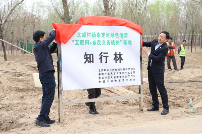 为记住这次难忘的植树劳动,同学们把种植的这片树林命名为“知行林”,寓意既要热爱劳动,更要参加劳动,用劳动感悟和接受劳动教育,也为校地合作建设起一片珍贵的“友谊林”!大兴区委常委、政法委书记张博同中国传媒大学党委副书记李众共同为“知行林”揭牌。