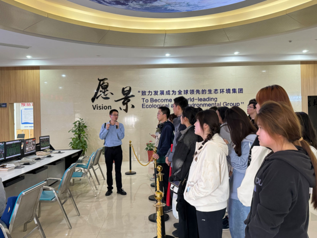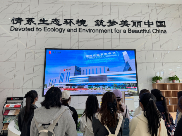 在无锡市生态文明教育实践基地——光大环保能源(宜兴)有限公司,环院学子也在同步参观学习。在工作人员的带领下,同学们先后参观了中央控制室、垃圾吊控制室,了解到垃圾的无害化处理和再生利用流程,系统化、科技化、自动化的设备给同学们留下了深刻印象。参观后,师生与企业负责人齐聚会议室,深化院企交流,共话专业发展。“环境+”这一学科交叉理念的交流,使每位环境学子明确了使命担当,凝聚交叉学科之力为实现“双碳”赋能。经过本次观摩学习,同学们拓宽了专业视野,为垃圾等固废处置注入了青年思考。
