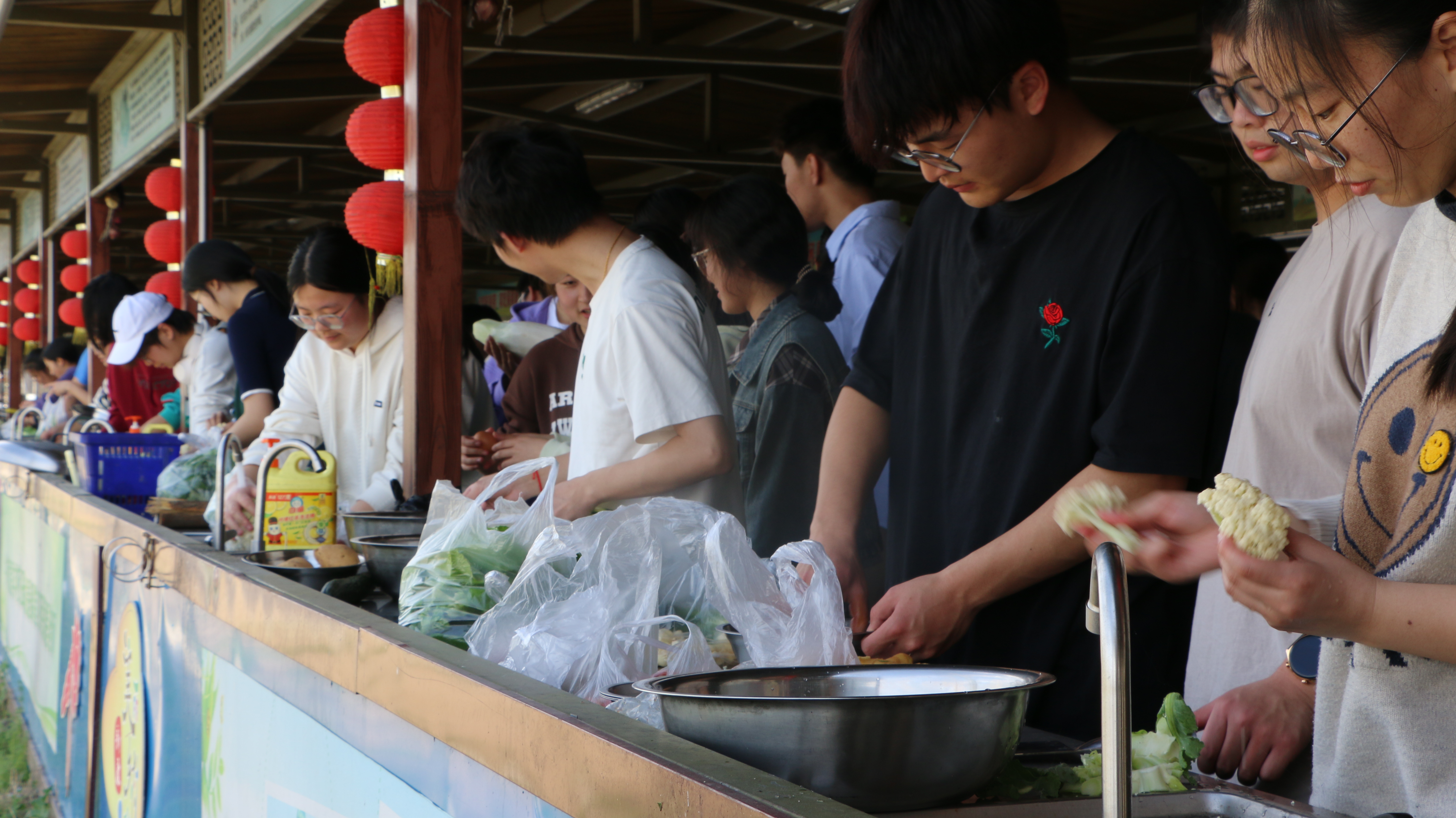辛勤劳作后,同学们来到厨荷园,亲自动手用土灶做饭。大家分工合作,有的洗菜切菜,有的生火煮饭,有的负责调味烹饪。从生火到最后的出锅,对大部分同学来说都是一次全新的体验。经过一番努力,丰盛的午餐呈现在眼前。在品尝自己的劳动成果时,大家的脸上都洋溢着满足和幸福的笑容。