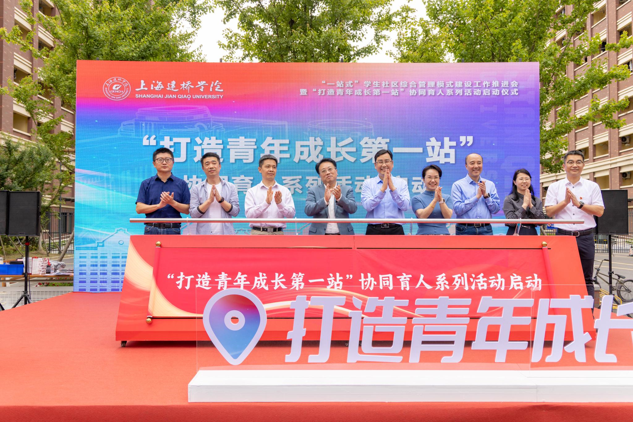 5月23日下午,上海建桥学院学生社区广场上,一场别开生面、洋溢着青春与梦想气息的活动在此拉开帷幕,该校“一站式”学生社区综合管理模式建设工作推进会暨“打造青年成长第一站”协同育人系列活动启动仪式举行。随着“一站式”学生社区党支部的正式揭牌和“打造青年成长第一站”协同育人系列活动的正式启动,标志着该校在强化党建引领,深化推进“三全育人”综合改革,探索新型学生管理与服务模式上又迈出了坚实的一步。“一站式”学生社区作为第一课堂外的育人新阵地,凝聚全员、全过程、全方位的育人合力,为青年学子搭建梦想起飞的跑道,共筑青春成长的第一站。