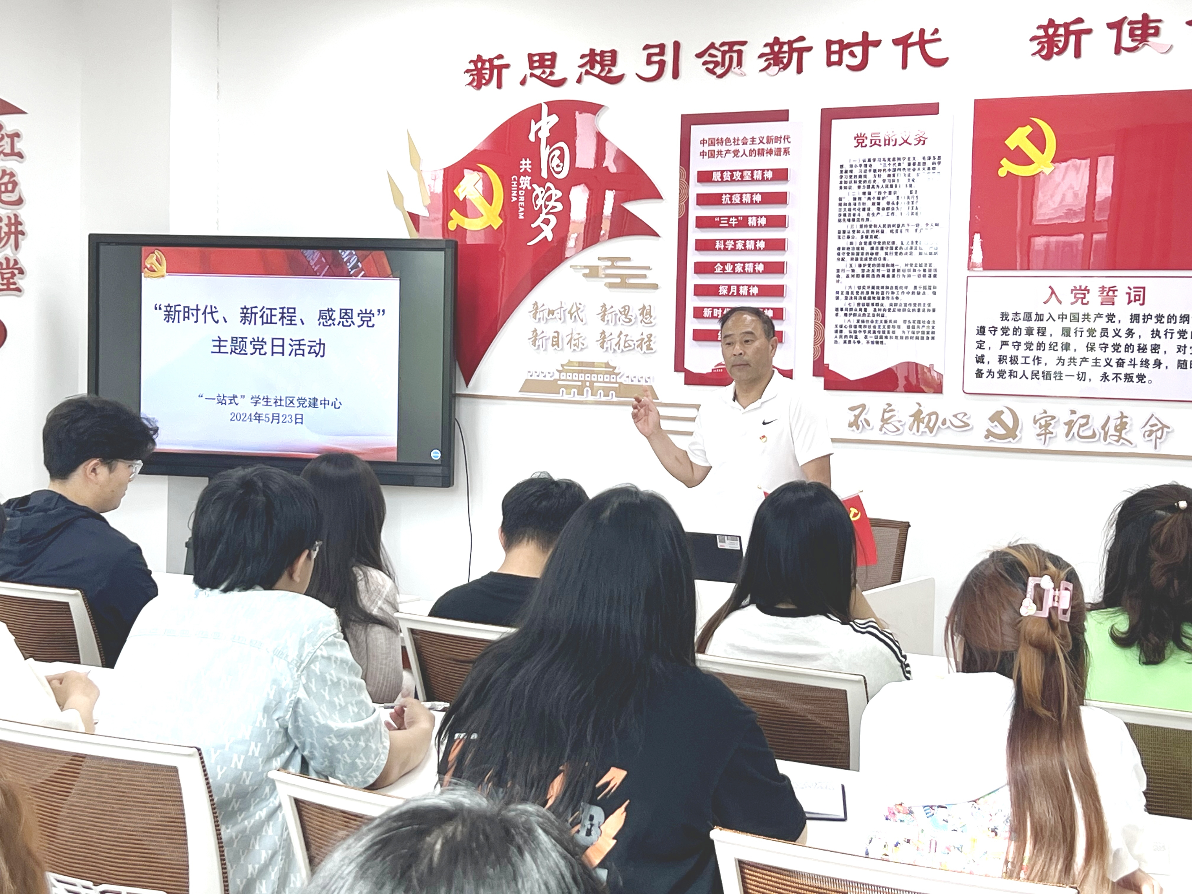 在“弘扬传统文化、构建五美社区”游园会活动中,传统与现代交相辉映,传统体育的灵动、中医文化的奥秘、服饰手作的魅力、人文历史的厚重,通过游戏、展览、表演等形式一一展现,让学生们在游玩中学,在体验中悟,共同编织出一幅幅“五美”和谐的社区画卷。“一站式”学生社区党建中心主题党日活动通过在社区“红色讲堂”组织开展党员、发展对象、入党积极分子“新时代、新征程、感恩党”分享交流会,不仅加深了学生们对中国共产党光辉历史的领悟与认知,还促进了个人学习与生活体悟的共鸣,激励学生们在新时代的征途中,用实际行动去践行自己的责任和使命。