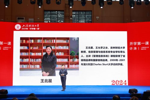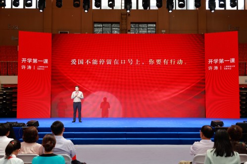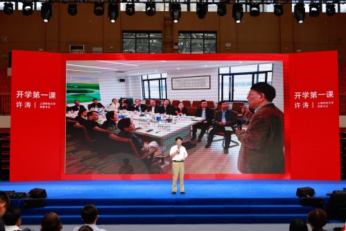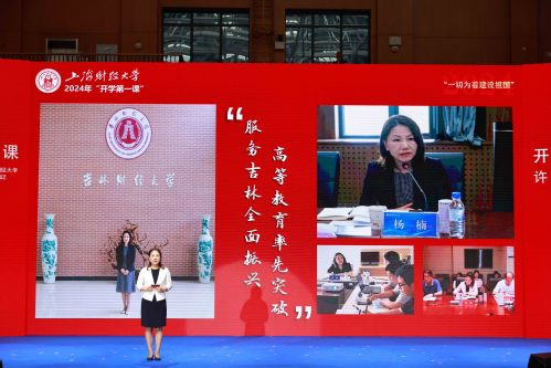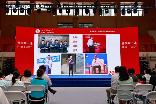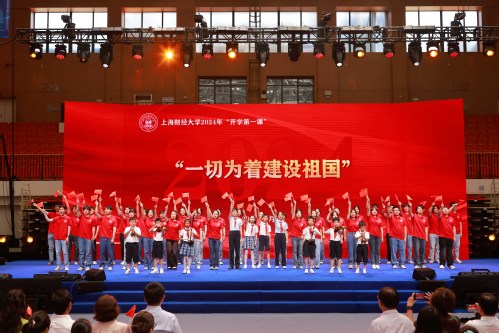 9月8日,上海财经大学2024级新生共同聆听书记第一堂思政课。课程主题为“一切为着建设祖国”,由上海财经大学党委书记许涛和师生代表、校友嘉宾及校外嘉宾共同讲述。课程共分为“前辈足迹共踏寻”“爱国情怀意正浓”“青春报国正当时”三个篇章,结合情景讲述、舞台剧、思政微课等生动形式呈现了上海财经大学“一切为着建设祖国”的光荣传统和新时代上财人矢志报国的坚守与担当。