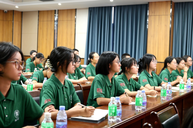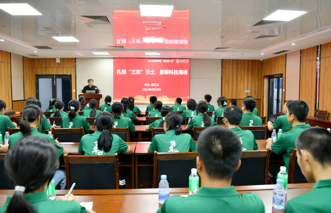 “新时代农林高校学子应怎样投身农业强国建设?”薛红卫以作物生长为喻,期望同学们像种子一样,努力向下扎根、向阳向上生长,以蓬勃的生命力将所学所思所悟真正应用到建设农业强国和推进农业农村现代化的实践当中。薛红卫结合“修德、博学、求实、创新”的校训向同学们提了四点希望:一是以修德为先,厚植科教报国的理想抱负。华农学子不仅要修好学、为人之德,更要修科教报国之德,向立志科学救国的创校先驱唐有恒教授、为解决农夫温饱而决意报考农科的丁颖院士以及“一心向党、一生爱国”的卢永根院士学习,赓续百年华农所积淀的强农兴农、矢志报国的红色基因和优良传统。二是以博学为本,培养兼收并蓄的学习能力。华农学子要特别重视用好优质的学习资源、掌握科学的学习方法,在学好专业知识的基础上积极探索如何突破学科专业、学习形式和知识认知的界限,提高获取知识的能力,博采众长,厚积成长力量。三是以求实为要,练就知行合一的精神品格。“纸上得来终觉浅,绝知此事要躬行”,华农学子要做到知行合一、以知促行、以行求知,努力成为有理想、有学问、有才干的实干家。四是以创新为志,勇攀强农兴农的科技高峰。华农学子要勇敢肩负起时代赋予的历史重任,既要敢闯敢试,敢于“上天”抢占制高点,让科研之根扎得更深,又要脚踏实地,勇于“入地”走出象牙塔,把科技强农兴农的论文写在祖国的大地上,不负青春底色。