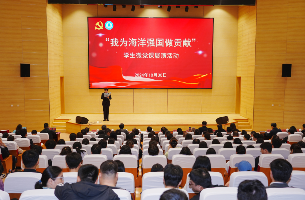 为深入学习贯彻党的二十大和二十届三中全会精神,巩固拓展主题教育成果,深化党纪学习教育成效,发挥微党课以小见大、见微知著的优势,推动各级党组织把讲党课、上党课融入日常,10月30日下午,以“我为海洋强国做贡献”为主题的学生微党课展演活动在学校行政楼100号报告厅堂隆重举行。
