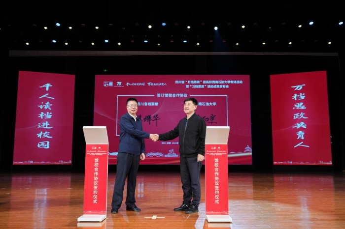近日,四川省“万档思政”进高校西南石油大学专场活动暨“万档思政”活动成果发布会在西南石油大学双创大楼学术报告厅隆重举行,四川省档案馆与西南石油大学签订馆校合作协议。