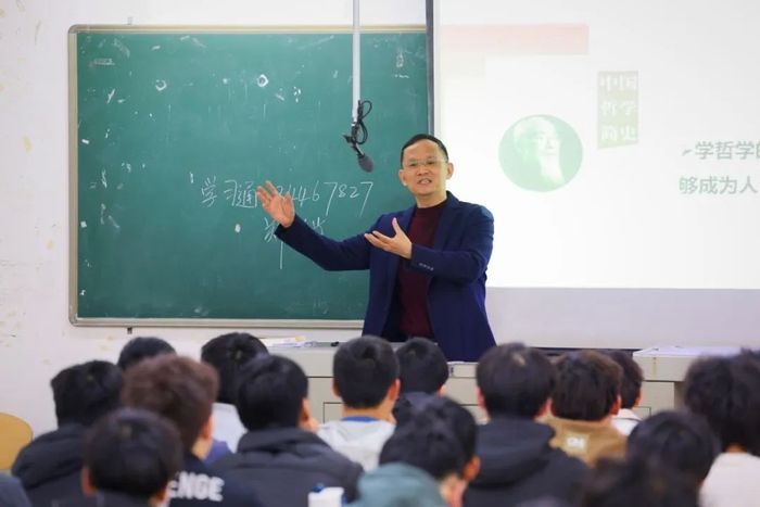 “乘”势而上,弘扬中国精神 在《习近平新时代中国特色社会主义思想概论》课上,他结合陈望道翻译《共产党宣言》《哪吒2》体现的中国自信以及DeepSeek展现的中国智慧、中国贡献和中国模式,引导学生感悟中国精神,要紧紧抓住时代赋予的机遇,乘势而上,以习近平新时代中国特色社会主义思想为指引,对内传播马克思主义基本原理,对外传递人类共同价值,在学习和实践中推动马克思主义基本原理与中华优秀传统文化深度融合,筑牢思想堡垒,实现价值的不断“乘”长,为实现中华民族伟大复兴的中国梦贡献青春力量。