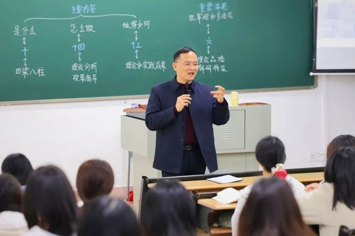 “减”去思想杂质,坚守家国情怀 在《马克思主义基本原理》课堂中,他通过使用DeepSeek指令对话“经济学专业本科生学习马克思主义基本原理的意义”,和同学们一起分享由这指令所延伸出的丰富内容与深刻见解。他指出,当今时代,国家与世界正经历着急速的变化,在这样的背景下,经济学专业学生学习马克思主义基本原理意义重大。他强调,同学们要学会带着批判性思维学习,以开放包容的姿态吸纳人类文明精华,坚决“减”去“社会达尔文主义”等思想杂质,希望同学们都能成长为有家国情怀的社会主义建设者,在中西方理论的对比分析中,不断提升理论运用与践行的能力,以正确价值观引领人生方向。