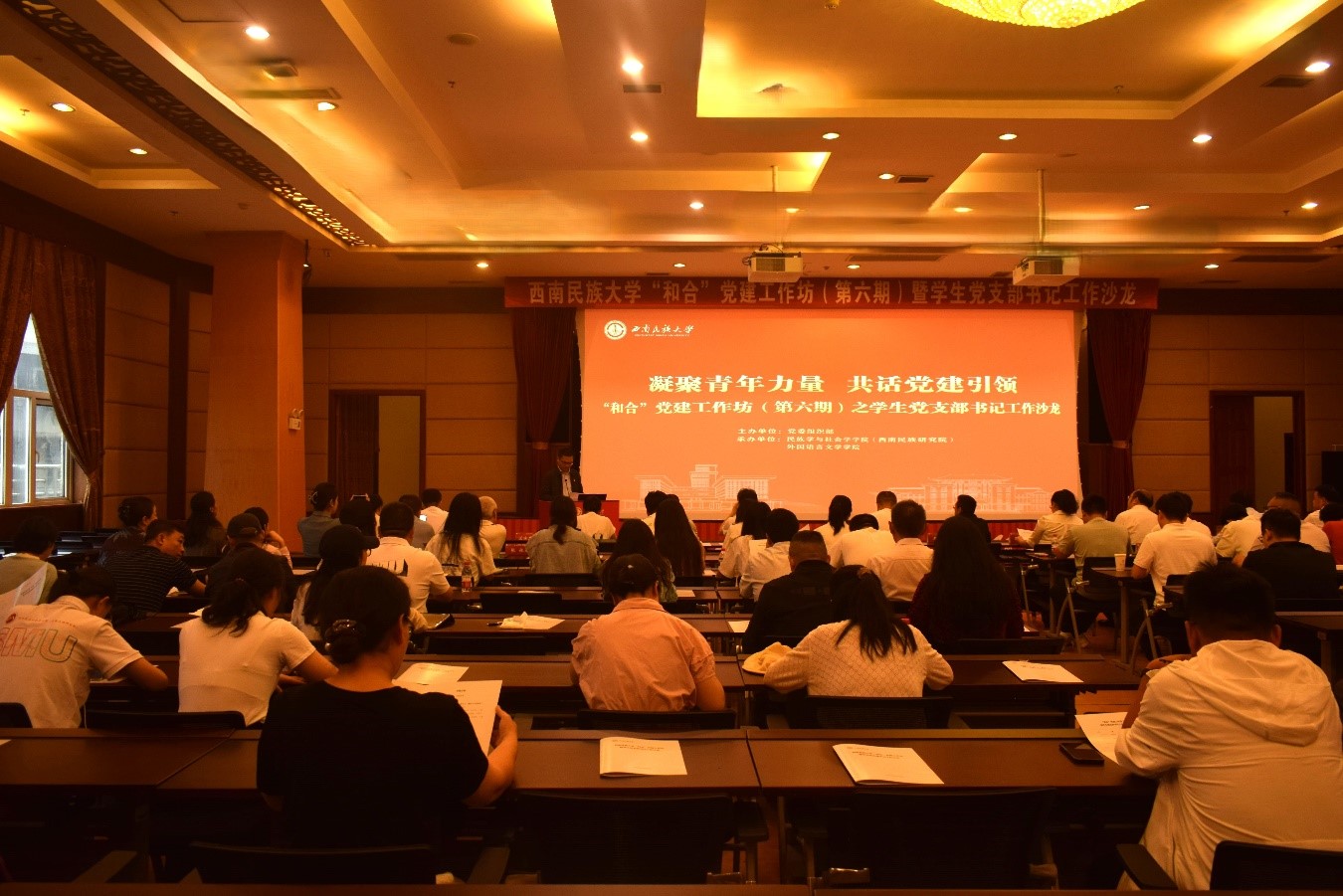 活动由党委组织部主办,民族学与社会学学院党委、外国语言文学学院共同承办,采用了“理论宣讲+主题分享+微党课展示+参观学习+研讨交流”的递进式学习模式,促进了学生党支部书记理论知识与实践能力的双提升。校属党委副书记、学生党支部书记、组织员工作室成员、特邀嘉宾等100余人出席活动。