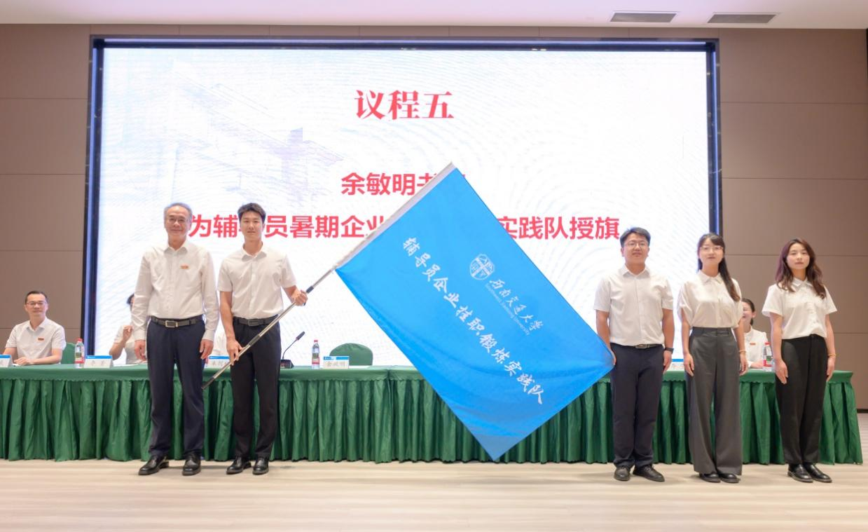2025年7月8日,学校举行辅导员挂职锻炼出征仪式。仪式现场,学校党委书记余敏明为挂职锻炼实践队郑重授旗,旗帜的传递不仅承载着学校对挂职辅导员的殷切期望,更象征着思政育人力量向行业一线的延伸。余敏明强调,辅导员要以“躬行者”之姿扎根一线,做学生成长的同行者。学校将通过辅导员挂职搭建起的“桥梁”,将校园育人小课堂延伸到社会育人大课堂,更好地引导学生成长成才和择业就业。