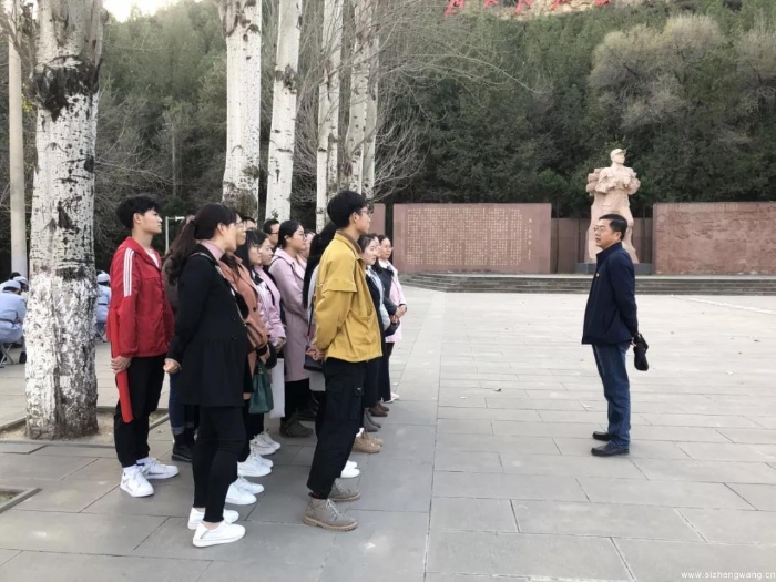 师生党员参观了枣园革命旧址,进一步体会到了革命党人在延安时期的精神品质。在《为人民服务》讲话纪念广场,教工党支部书记高锦花以张思德为人民服务精神内容为主题进行了现场教学。