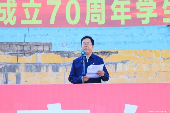 田伏虎副书记在讲话中与在场师生一道重温了党的光荣历史和辉煌业绩,并从中国人民命运和历史发展、中华民族伟大复兴的历史根基、中国特色社会主义发展道路、社会主义现代化建设、社会主义发展方向、世界社会主义发展、国际地位、马克思主义在世界的影响、世界政治格局等九个方面就新中国成立的伟大历史意义进行了重点阐述。同时,寄希望于新时代延大的党员大学生,紧密团结在以习近平同志为核心的党中央周围,自觉担当,勇于创新,为“更有特色、更有水平”大学建设建功立业,为中华民族伟大复兴贡献力量。