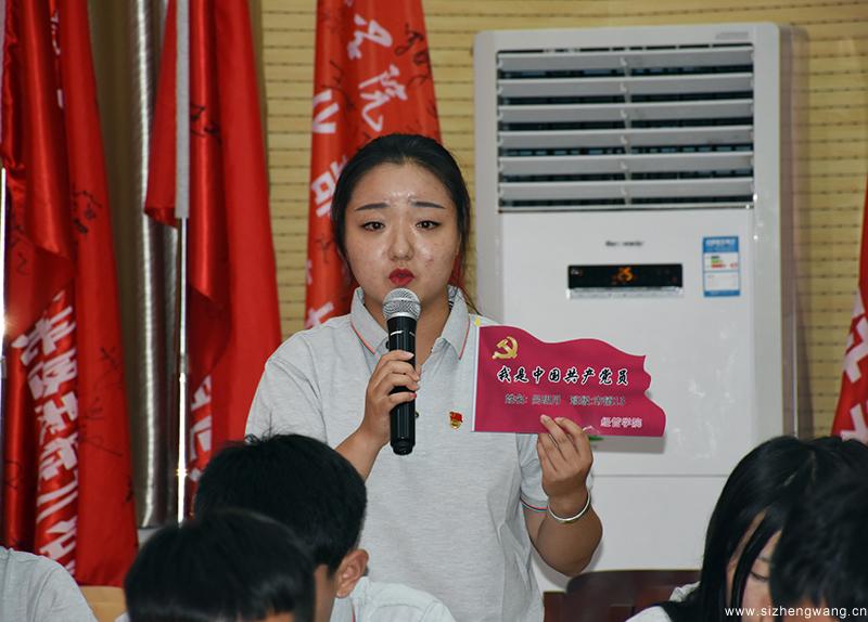 第二环节中,5位毕业生党员代表毕业生党员发了言。市场营销2013级的吕明月同学感慨道:“我们是从延安走出的共产党员,我们理应发挥自己的光和热,去温暖和鼓励身边的每一个人。我们无比期待并且坚信,我们一定会将这个社会建设得更加美好。”