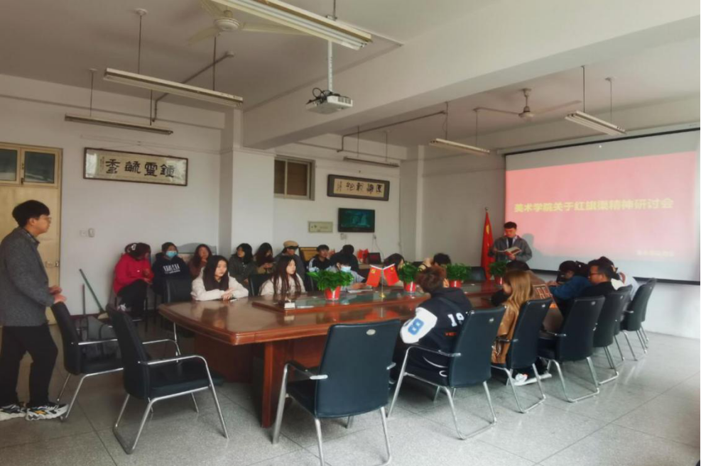 美术学院始终立足自身特色,将红旗渠精神融入思想教育、主题实践、艺术创作、教学科研等各个环节,引导广大师生在实现中国梦的伟大理想中创新创业创优,在社会主义核心价值观教育的实践中不断探索、创新。