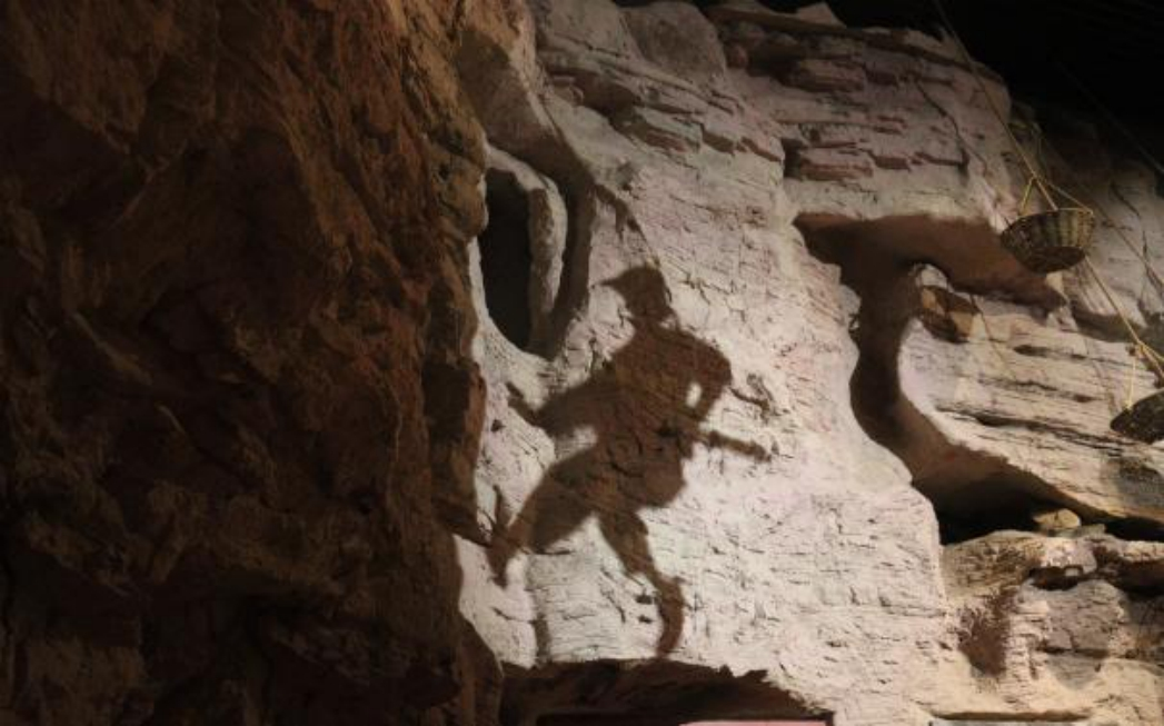 漫步在馆中,一幅巨大的壁画格外引人注意,它描绘着红旗渠开渠典礼当天的盛况。一位瘦弱的老人手拿一台索尼DV机,略显佝偻地站在画前,嘴中念念有词:“在哪儿呢?应该在这一片儿······”一双浑浊的眼睛深邃悠远地望着画卷上某一处,双瞳闪着异样的光芒。