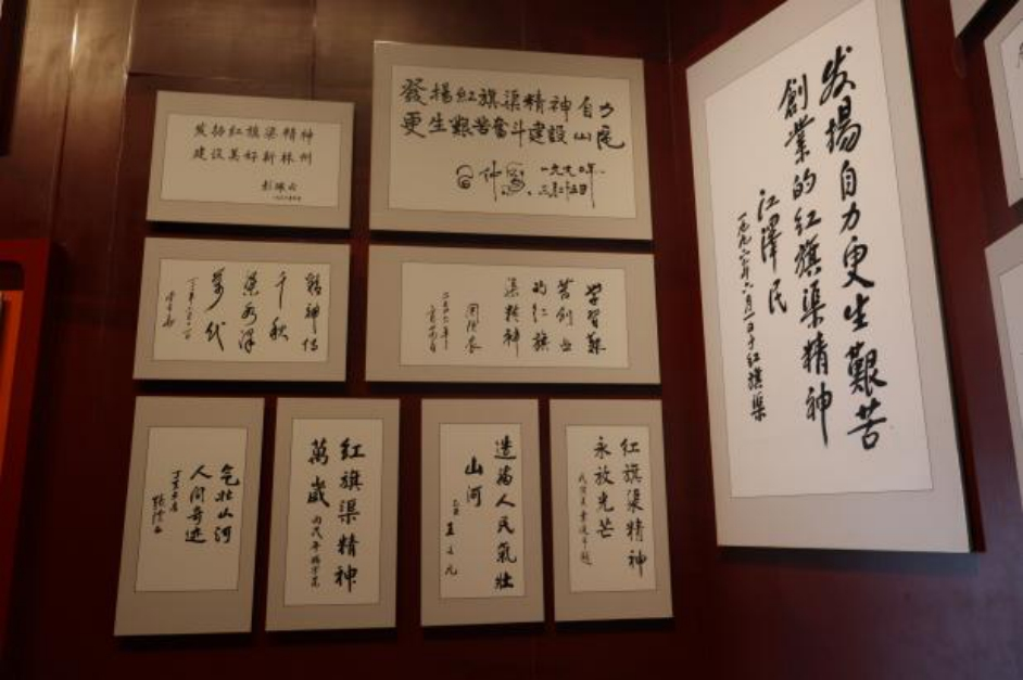 走进纪念馆内,随处可见当年修渠工人们开山架桥使用的工具,沉重的铁锤,麦秸编制的草帽,破损生锈的锅碗瓢盆······它们无声地讲述着当年修渠的艰辛:截断漳河,劈开太行,引漳入林。1960年,县政府动员全县10万民众,逢山凿洞,遇沟架桥,削平1250座山头,凿通211个隧洞,架设152座渡槽,终于在太行山的悬崖峭壁上建成全长一千五百多公里的大型引水灌溉工程红旗渠。