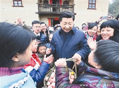 在村里,家家都忙着准备年货,习近平每到一处,都向乡亲们问好。看到一家正在打糍粑,习近平饶有兴致参与打了起来。习近平还给贫困户送去年货,给孩子们送去书包,祝家家都把年过好。