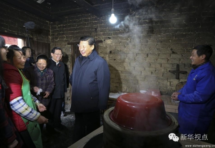 在红军烈士后代左秀发家中,习近平对一家人立足本地资源、依靠竹木加工增收脱贫的做法给予肯定,祝他们生产的竹筒畅销。他指出,扶贫、脱贫的措施和工作一定要精准,要因户施策、因人施策,扶到点上、扶到根上,不能大而化之。在贫困户张成德家中,习近平一间一间屋子察看,坐下来同夫妇俩算收入支出账,问家里种了什么、养了什么,吃穿住行还有什么困难和需求。老乡端上热气腾腾的米果请总书记品尝。女主人说,总书记给全国人民当家当得好,老百姓感到很幸福。习近平回应她说,我们国家是人民当家作主,包括我在内,所有领导干部都是人民勤务员。