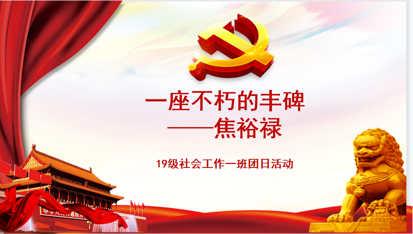 为进一步发扬革命精神,大力发扬红色传统、传承红色基因,赓续共产党人的精神血脉,响应教育部全国高校党史学习教育工作的要求,我政治与公共管理学院19级社会工作一班于4月27日下午开展以“焦裕禄精神”为主题的团日活动。在这春意盎然,阳光明媚的下午,我班同学齐聚在教室内一起回顾河南兰考县县委书记焦裕禄同志的感人事迹,学习焦裕禄同志亲民爱民、无私奉献的精神。本活动旨在通过学习“焦裕禄精神”加强同学们的爱国思想教育,提升同学们政治素养,提高思想觉悟,培养同学爱党亲民的意识,时刻牢记使命。