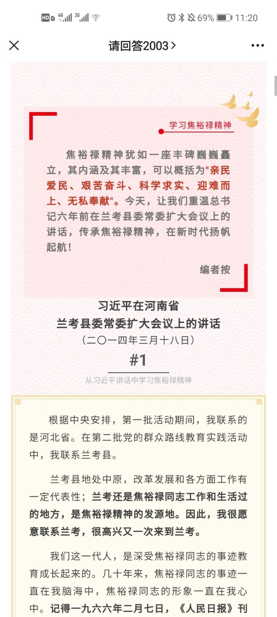 同时,班级公众号制作推文《焦裕禄精神|生也沙丘,死也沙丘》,转载习近平总书记2014年在兰考县委常委扩大会议上的讲话全文,并做编者按、附学习心得。
