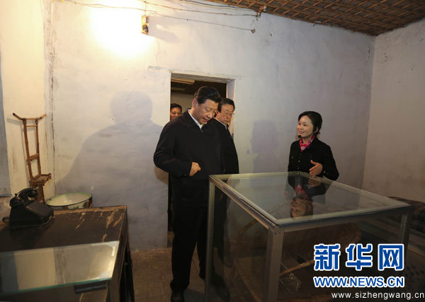 兰考县东坝头乡张庄村,是焦裕禄当年找到防治风沙良策并首先取得成功的地方。下午4点10分许,习近平来到这里考察。他牵着85岁的张景枝老人的手来到她家,看厨房,察卧室,同一家人促膝交谈,问家里一年产多少粮食?种的蔬菜够不够吃?农业补贴和低保、医保等政策是否享受到?对新农村建设有哪些要求?习近平叮嘱当地干部要切实关心农村每个家庭特别是贫困家庭,通过因地制宜发展产业促进农民增收致富。