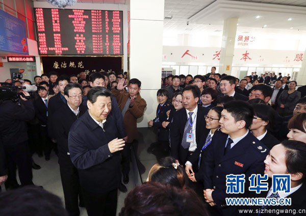 17日下午,习近平来到兰考县为民服务中心考察。他向地税、国土、民政、房管中心等窗口的工作人员详细询问有关情况,勉励他们相互学习、相互帮助,共同把服务工作做好。他对工作人员和前来办事的群众说,随着市场经济发展和社会治理改善,政府对老百姓的服务还要不断加强。窗口单位是第二批教育实践活动查摆和解决作风问题的重点部位,要在活动中总结经验、解决问题,从服务内容、办事流程、跟踪反馈、结果评价等方面不断改进,使服务更加精细、规范、高效。