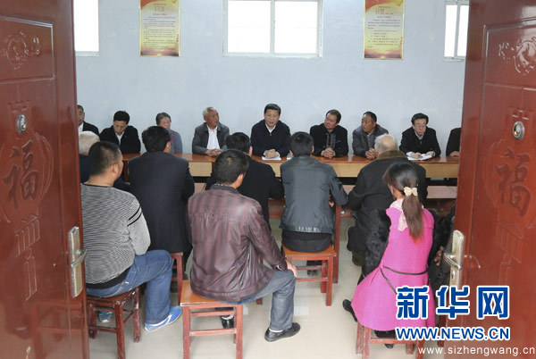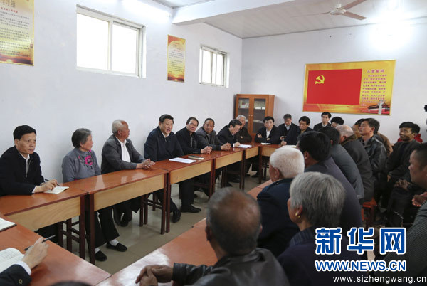 随后,习近平同乡、村干部和村民代表进行了座谈。6位同志围绕农村发展、农民增收、基层干部转变作风等向总书记吐露心声,习近平边听边记。他说,兰考是粮食主产县,首先要做好耕地这篇文章。农村将要推进一系列改革,基层的同志要根据实际情况,积极探索如何让改革措施落地,多向上级提供经验、提出建议。习近平指出,乡村面临的不少矛盾,与上级政策指导和工作作风有关。在教育实践活动中,要坚持上下联动,共同解决难题。要进一步把农村党组织建设成为坚强的战斗堡垒,多渠道发挥农村党员先锋模范作用,带领村民一起建设社会主义新农村。