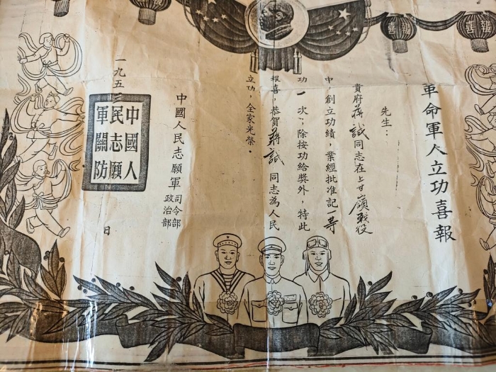 这是一位深藏功名30多年的战斗英雄。“我们只知道哥哥参加过抗美援朝,但他从来没说起自己立过多大的功。”蒋诚的弟弟蒋启鹏说,直到1988年,当时的四川省合川县修订县志,编撰人员在整理档案时,偶然发现一份尘封多年的《革命军人立功喜报》,上面载明:“贵府蒋诚同志在上甘岭战役中,创立功绩,业经批准记一等功一次,除按功给奖外,特此报喜……”