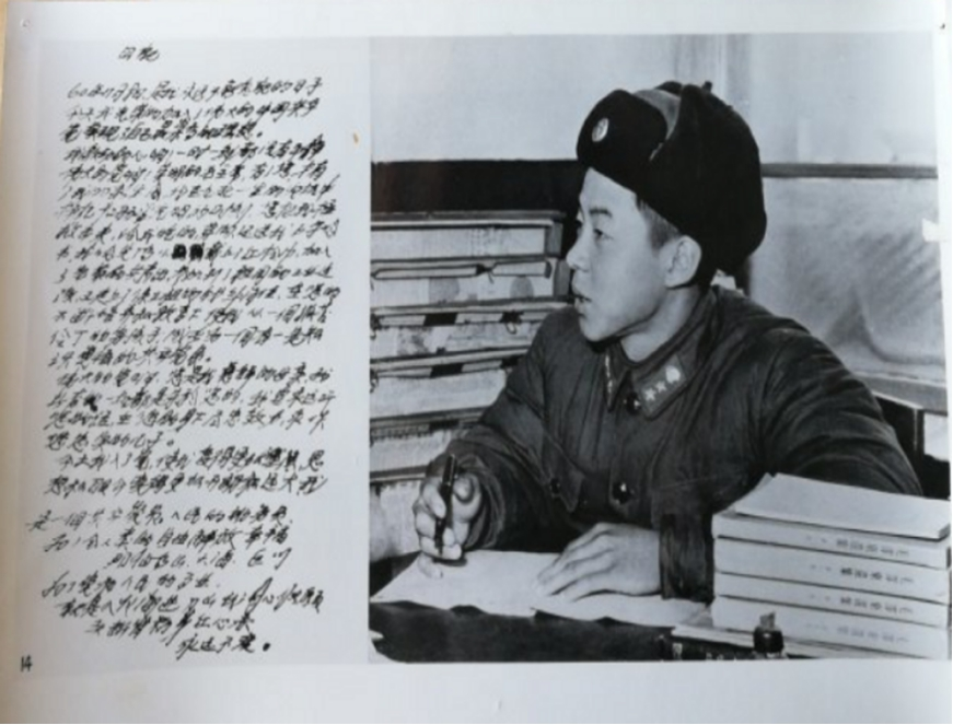 在雷锋的日记当中记满了他对革命先烈们的崇敬,邱少云、黄继光、董存瑞等等这些先烈们都曾出现在雷锋的笔下,但是在实际工作中,这些先烈们其实活在了雷锋的心中,例如:1962年1月14日雷锋在日记表达了面对困难艰苦的工作、复杂的环境的奋斗目标:“在最困难、最艰苦的工作中,我就想起了黄继光,浑身就有了力量,信心百倍,意志更坚强…… 我每次外出执行任务或在最复杂的环境中,就想起了邱少云,就能严格地要求自己,很好地遵守纪律……”