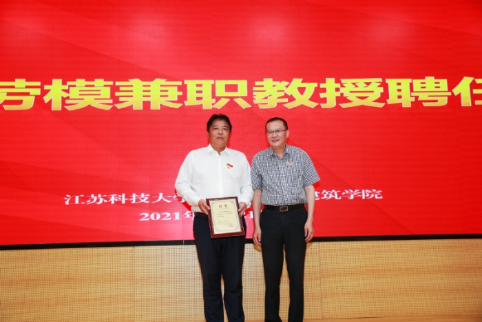5月21日,全国劳动模范、中共镇江市委党史学习教育劳模宣讲团成员沈春雷走进江苏科技大学名家讲坛,作“学党史 立新功”专题报告,用自身的奋斗故事诠释着劳模精神、劳动精神、工匠精神。当天,沈春雷先生还受聘成为江苏科技大学兼职教授,助力学校人才培养和事业发展。江苏科技大学党委常委、副校长汤建为沈春雷颁发教授聘书并佩戴江苏科技大学校徽。